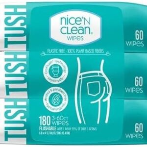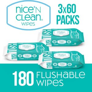 Nice ’N Clean Adult Flushable Wipes (3 × 60 ct) — 100% Plant-Based • Aloe & Vitamin E • Hypoallergenic & Sewer-Safe