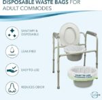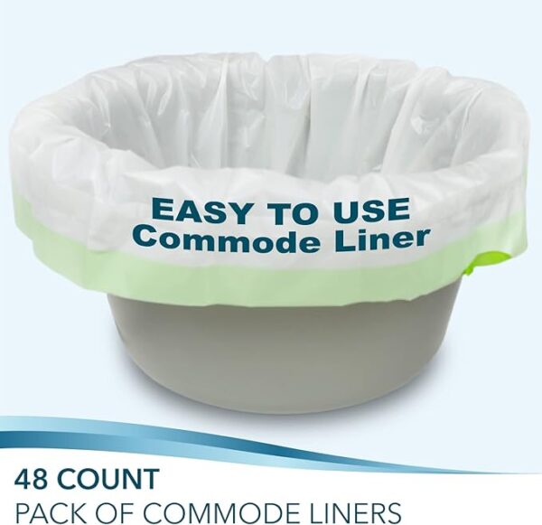 • No More Yuck: Now there’s no more need to clean out liquid and solid waste from portable commode toilets and bedpans. Each plastic commode liner is simple to insert and they are universal in size. Simply remove the liner from the commode chair after use and tie the drawstring for a seal-tight closure, then dispose safely in the garbage.