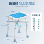 - Lightweight and Durable: Our Shower Bench is constructed with 1.4mm aluminum frame, Made of heavy-duty anodized aluminum frame, 1 pair of cross-bars added in the middle part supports up to 500 pounds. The lightweight frame is easily portable for added convenience.