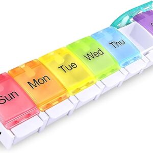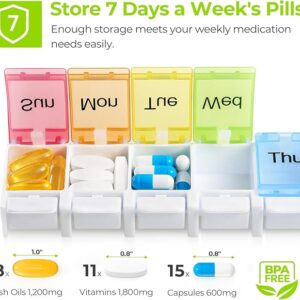 AUVON Weekly Pill Organizer Arthritis Friendly, BPA Free Travel 7 Day Pill Box Case with Spring Open Design and Large Compartment to Hold Vitamins, Cod Liver Oil, Supplements and Medication